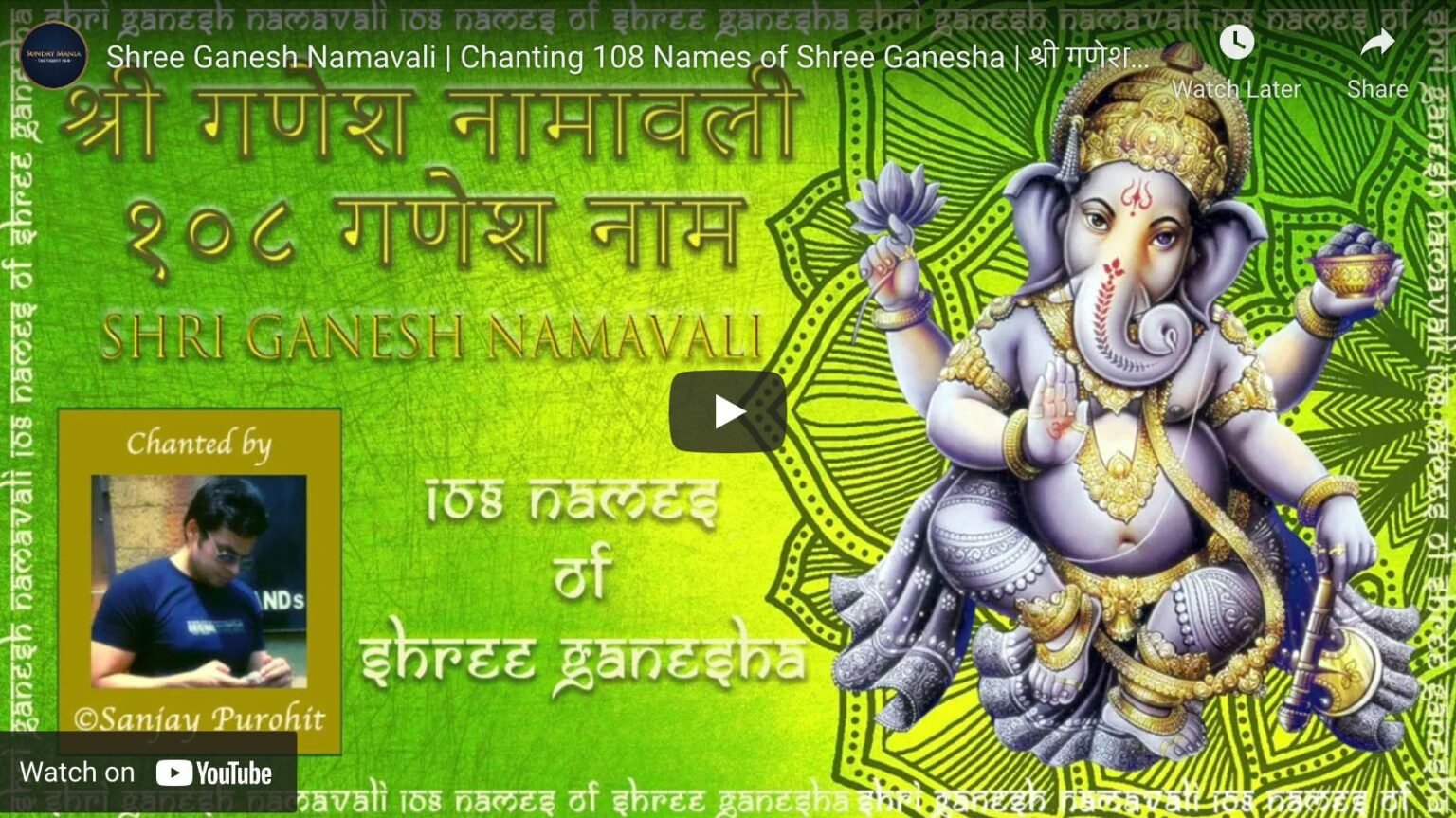 Shree Ganesh Namavali, 108 Names ॐ सुखनिधये नमः ।